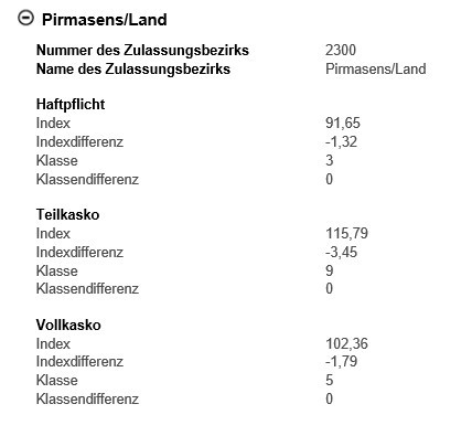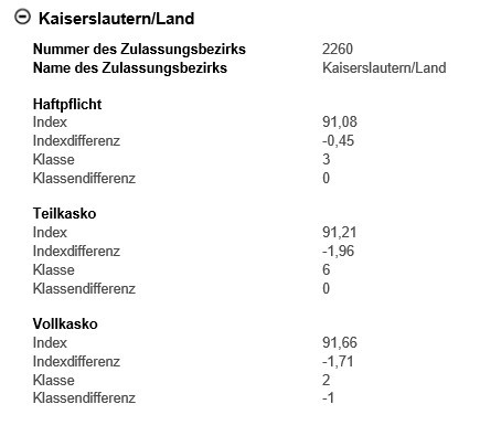 So ist etwa die Regionalklasse bei einer reinen Haftpflichtversicherung in beiden Kreisen identisch!